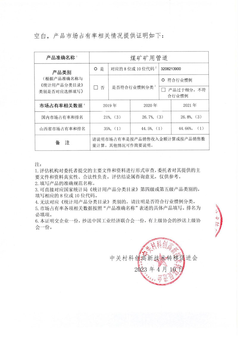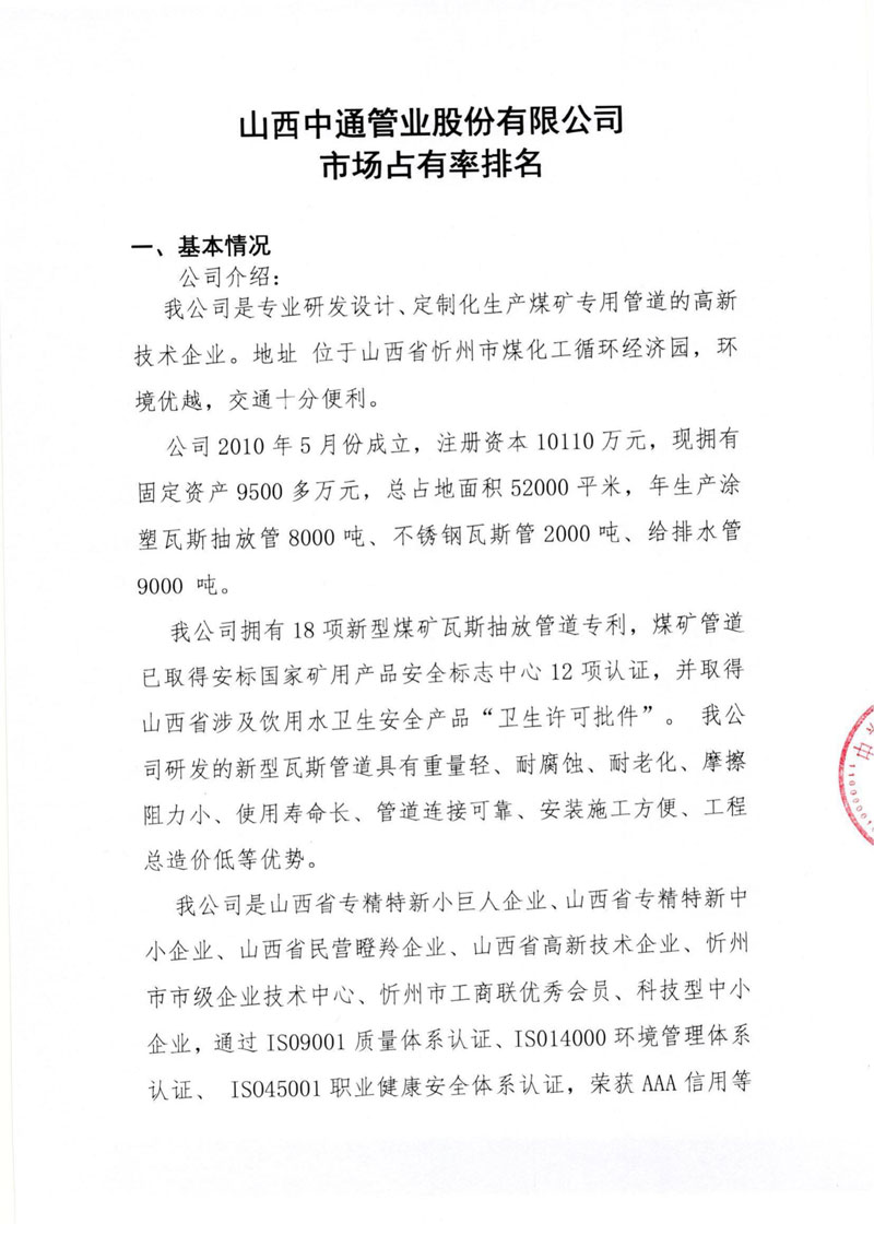 山西中通管業(yè)股份有限公司市場(chǎng)占有率排名